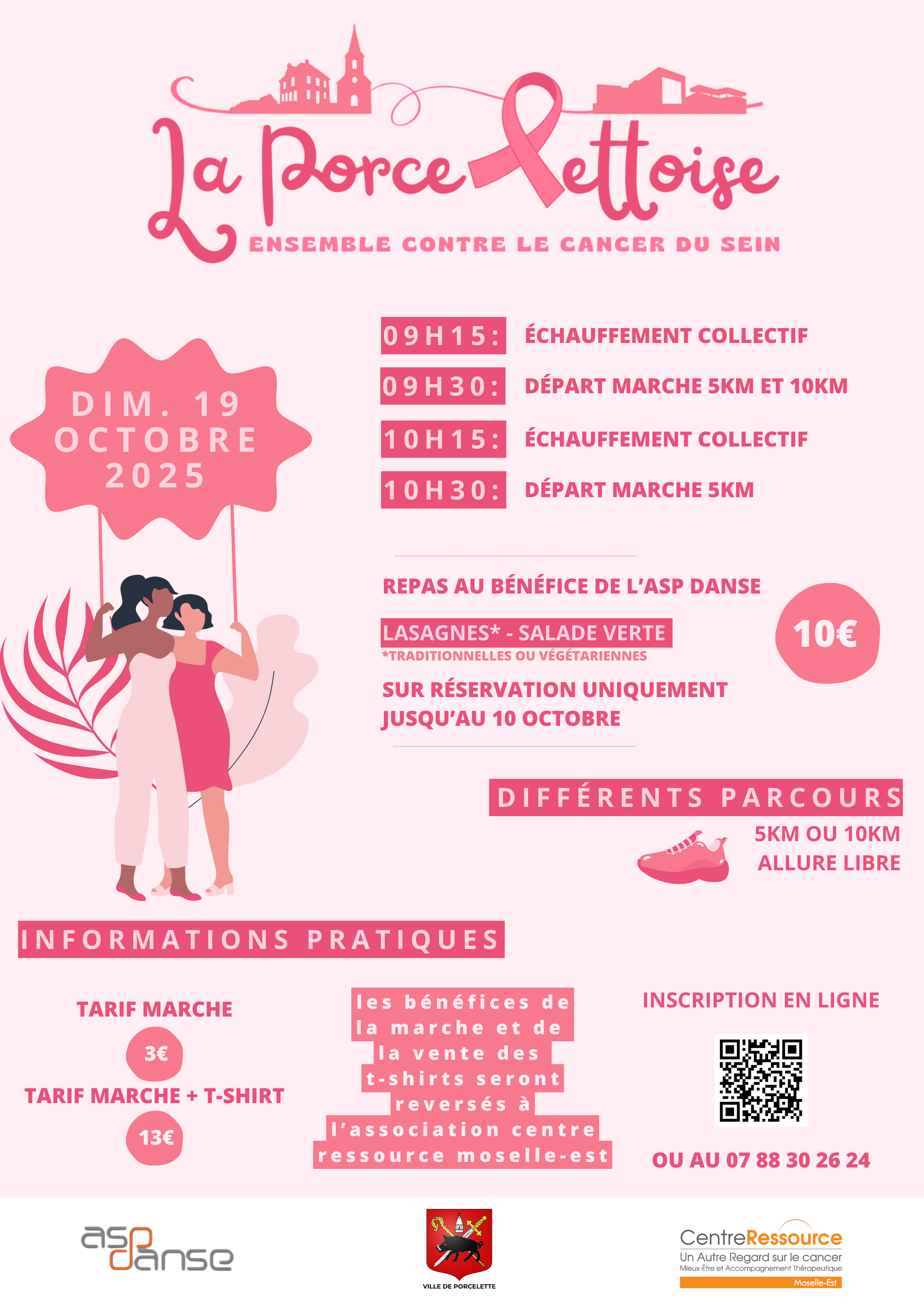 Dans le cadre d’Octobre Rose, la commune de Porcelette, en partenariat avec l’ASP Danse et le Centre Ressource Moselle-Est, organise la première édition de La Porcelettoise, une marche/course solidaire.